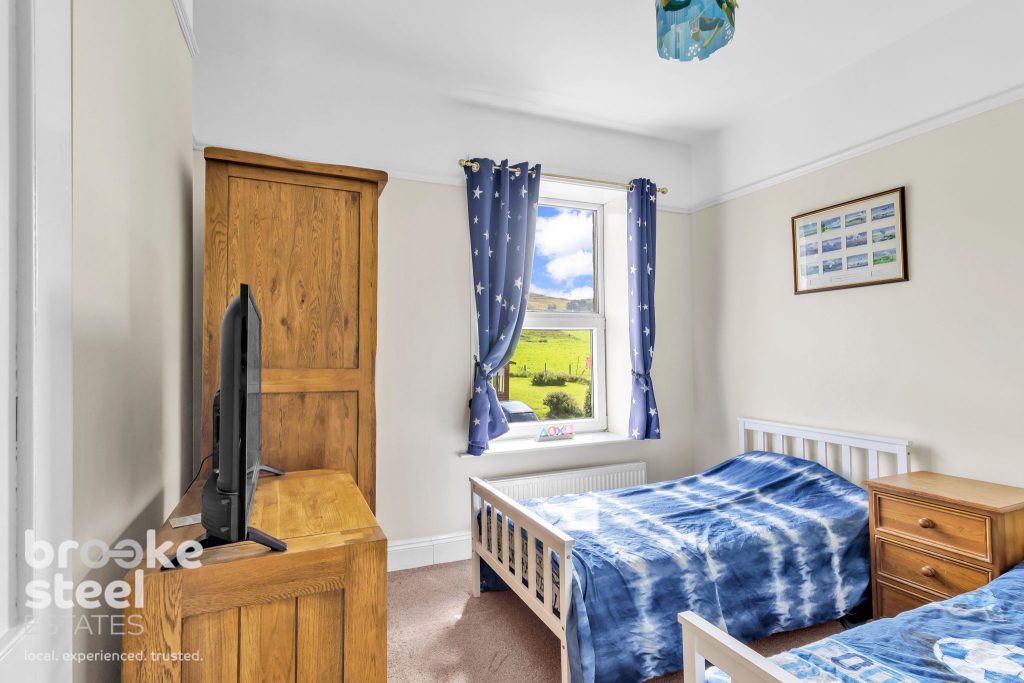 The kitchen opens out to a delightful rear garden, complete with decking and low-maintenance artificial grass. It's an ideal space for entertaining or simply unwinding while enjoying the open views. The front garden is equally appealing, enclosed and adorned with vibrant flowers.
