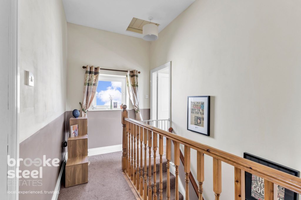 Loft access, smoke alarm, storage cupboard and doors to three bedrooms and bathroom.