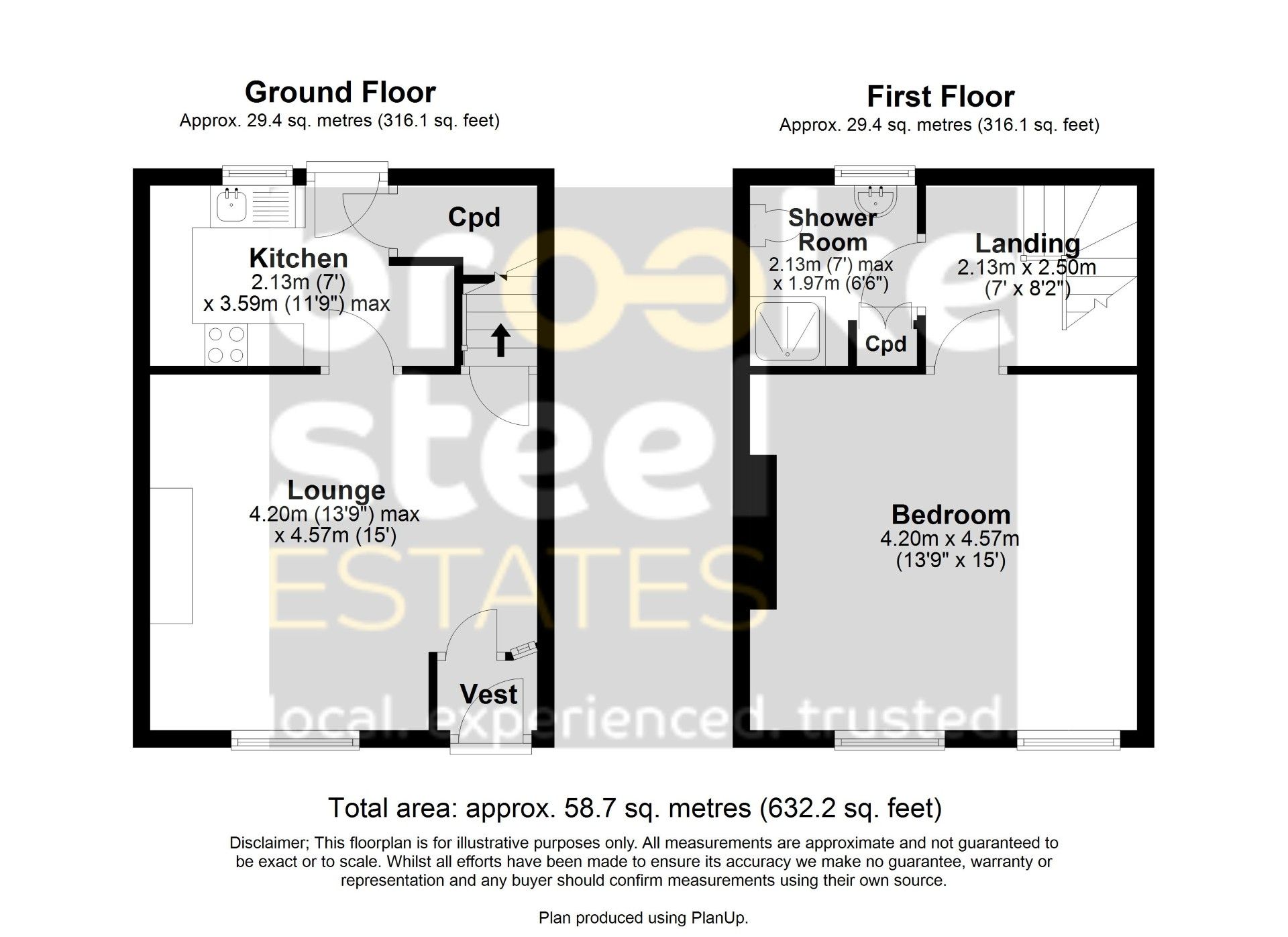 Landing w: 2.13m x l: 2.44m (w: 7' x l: 8' )