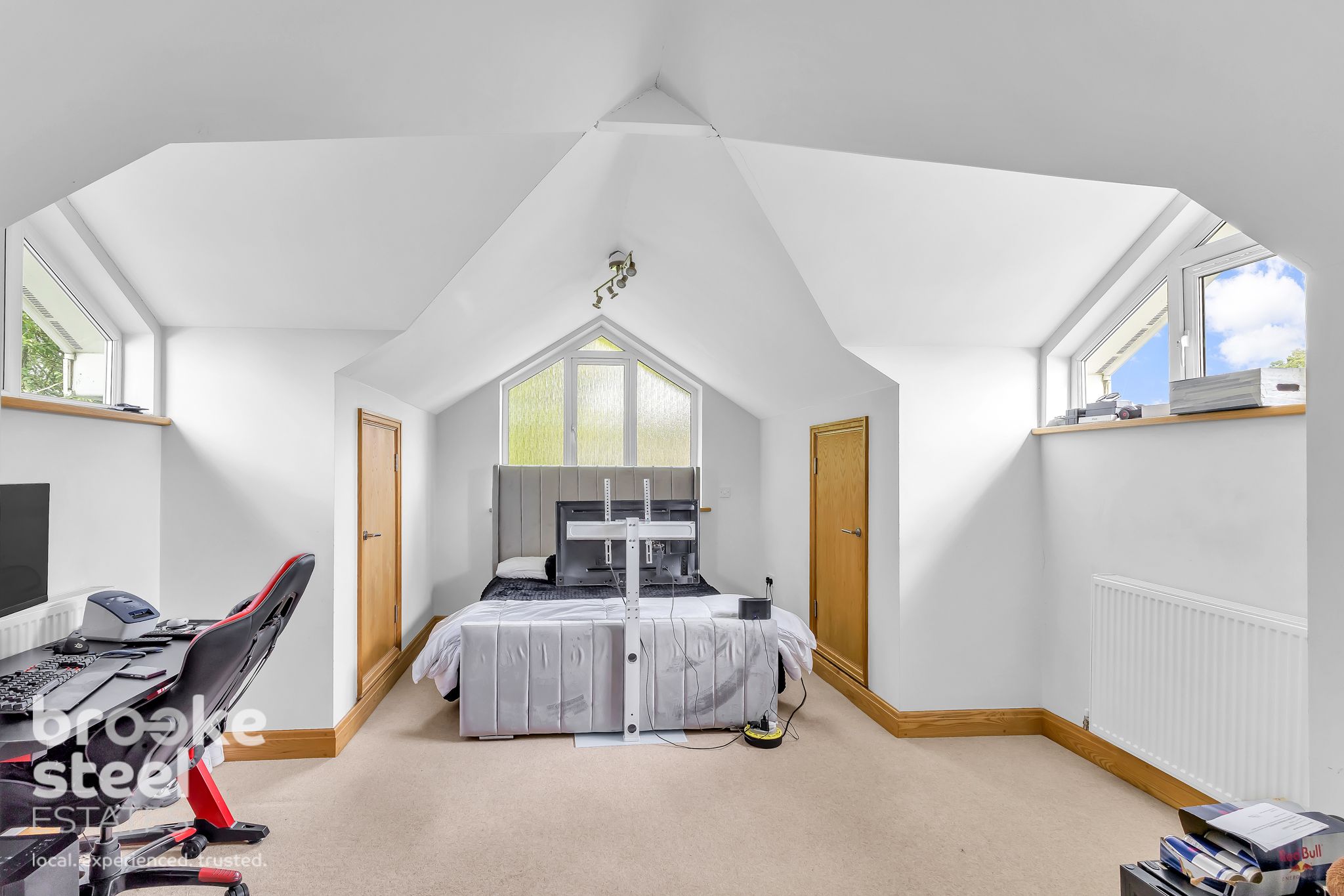 Eco-conscious buyers will appreciate the green energy system in place, comprising an 11kW Samsung Air Source Heat Pump (effective to -12.5°C), 5.58kW of solar panels (16 in total), and a 5kW battery storage system. Comfort is further enhanced by features such as a sealed log burner, remote-controlled blinds, and app-operated Ring doorbell and security camera systems.